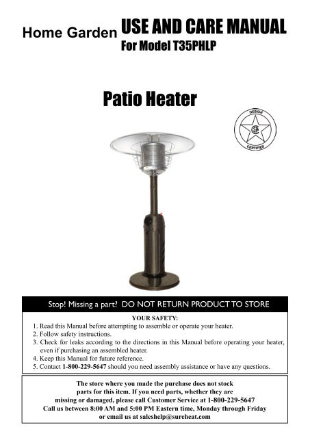 Patio Comfort Outdoor Patio Heater Pc 02 Ereplacementparts Com