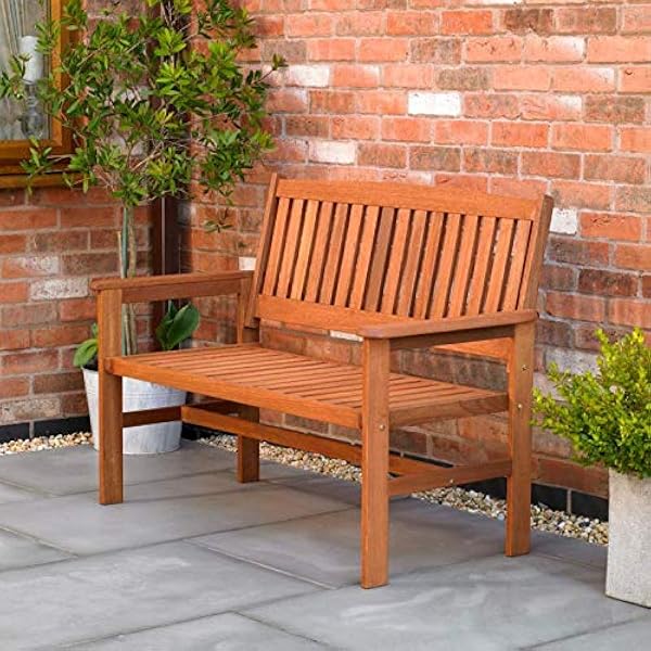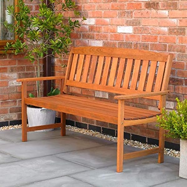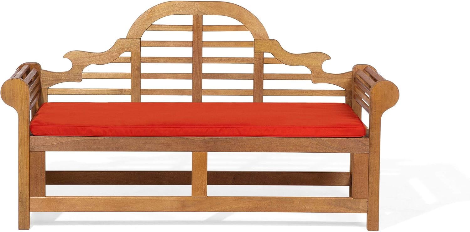 Wooden Garden Bench 3 Seats Classic Slats Design Brick Red Cushion