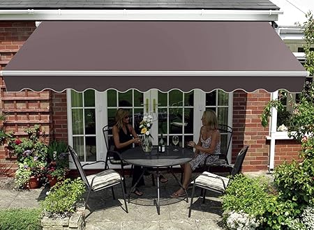 12 X10 Manual Retractable Patio Awning Fabric House Sun Shade