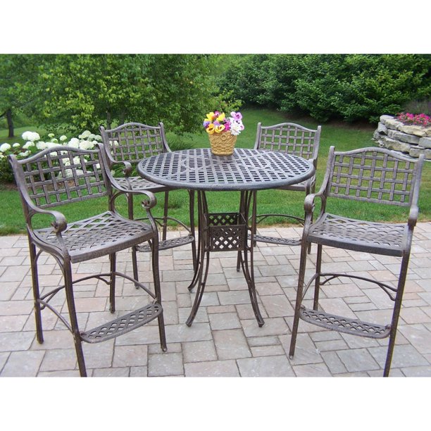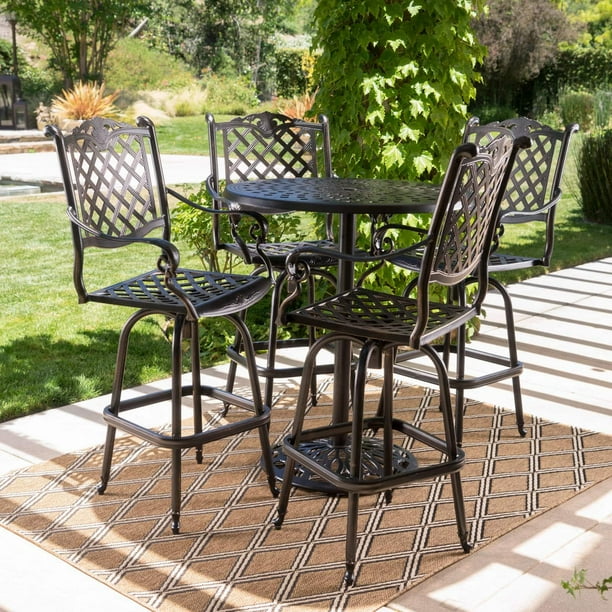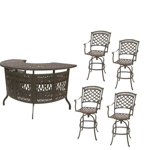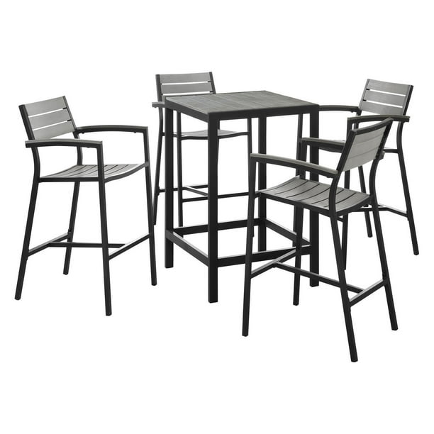Mf Stuido 5pcs Patio Bar Set With Stools And Metal Desktop Table
