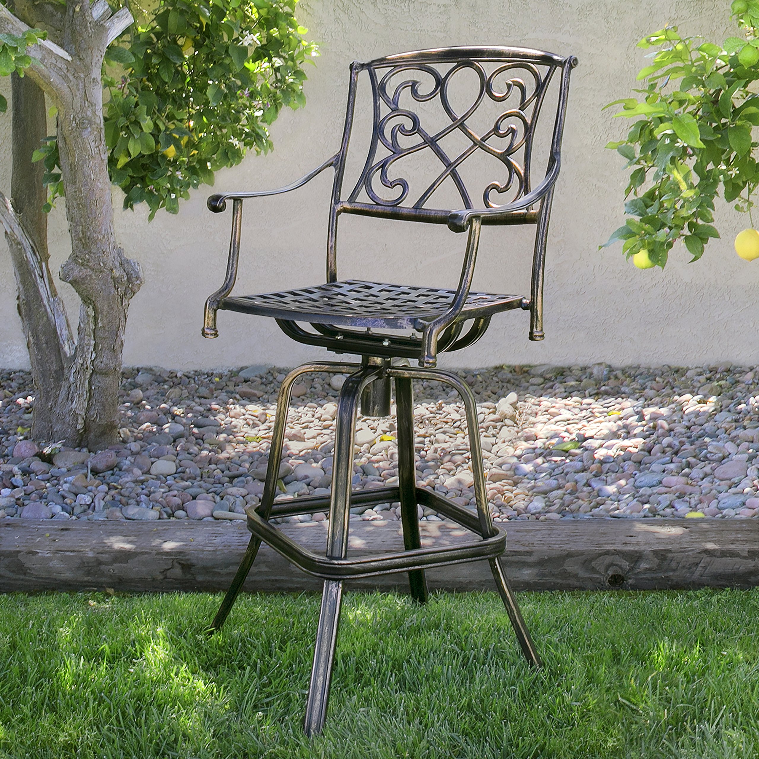 Outdoor Bar Stools Set Of 4 Swivels Seat Cast Aluminum Patio