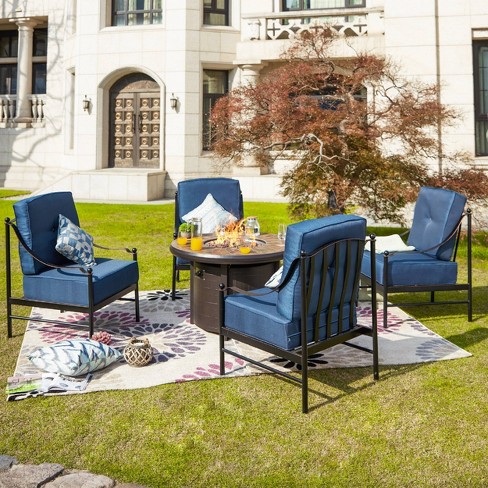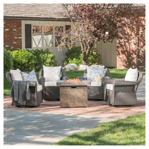 5pc Portico Wicker Patio Chair Cast Aluminum Gas Fire Pit