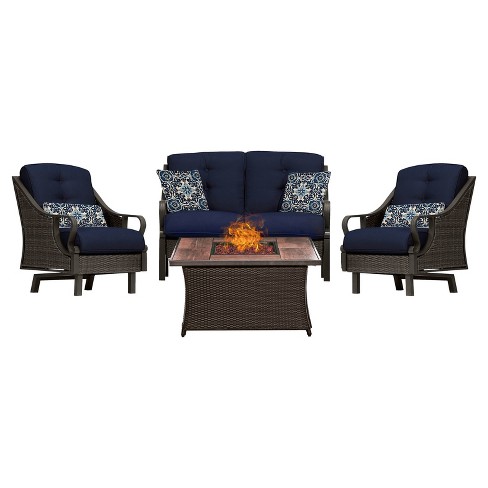 Amazon Com Fire Pit Table Set Elisabeth 5pc Deep Seating Cast Aluminum Patio Furniture Desert Bronze Garden Outdoor