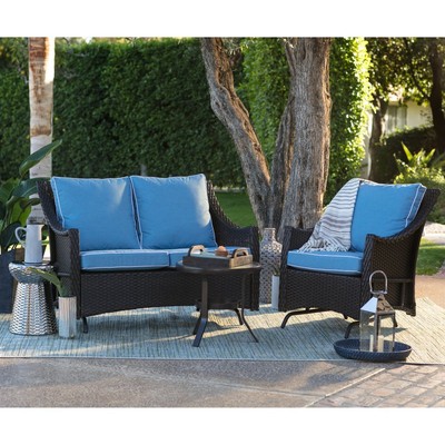 Blue Cushion 3 Piece Resin Patio Glider Chair Set Outdoor Home