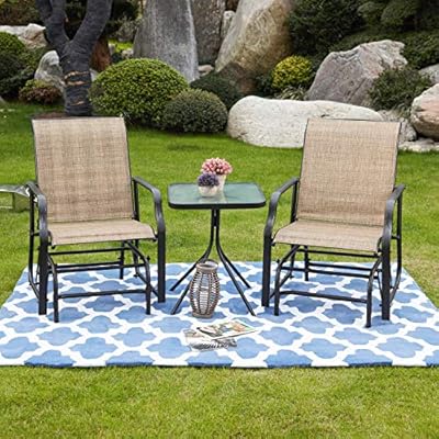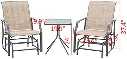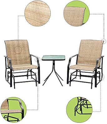 Phi Villa Patio Glider Chair Outdoor Bistro Set 3 Pcs 2 Porch