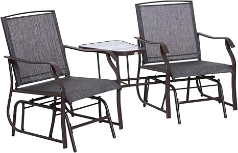 Grey Outsunny 3 Piece Patio Glider Chair Bistro Set Outdoor
