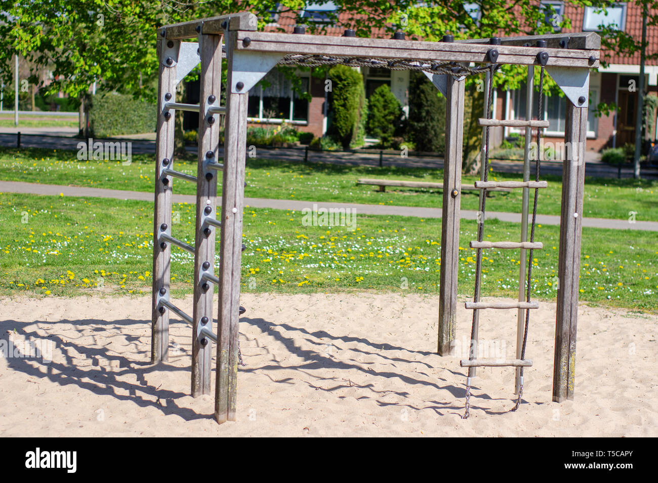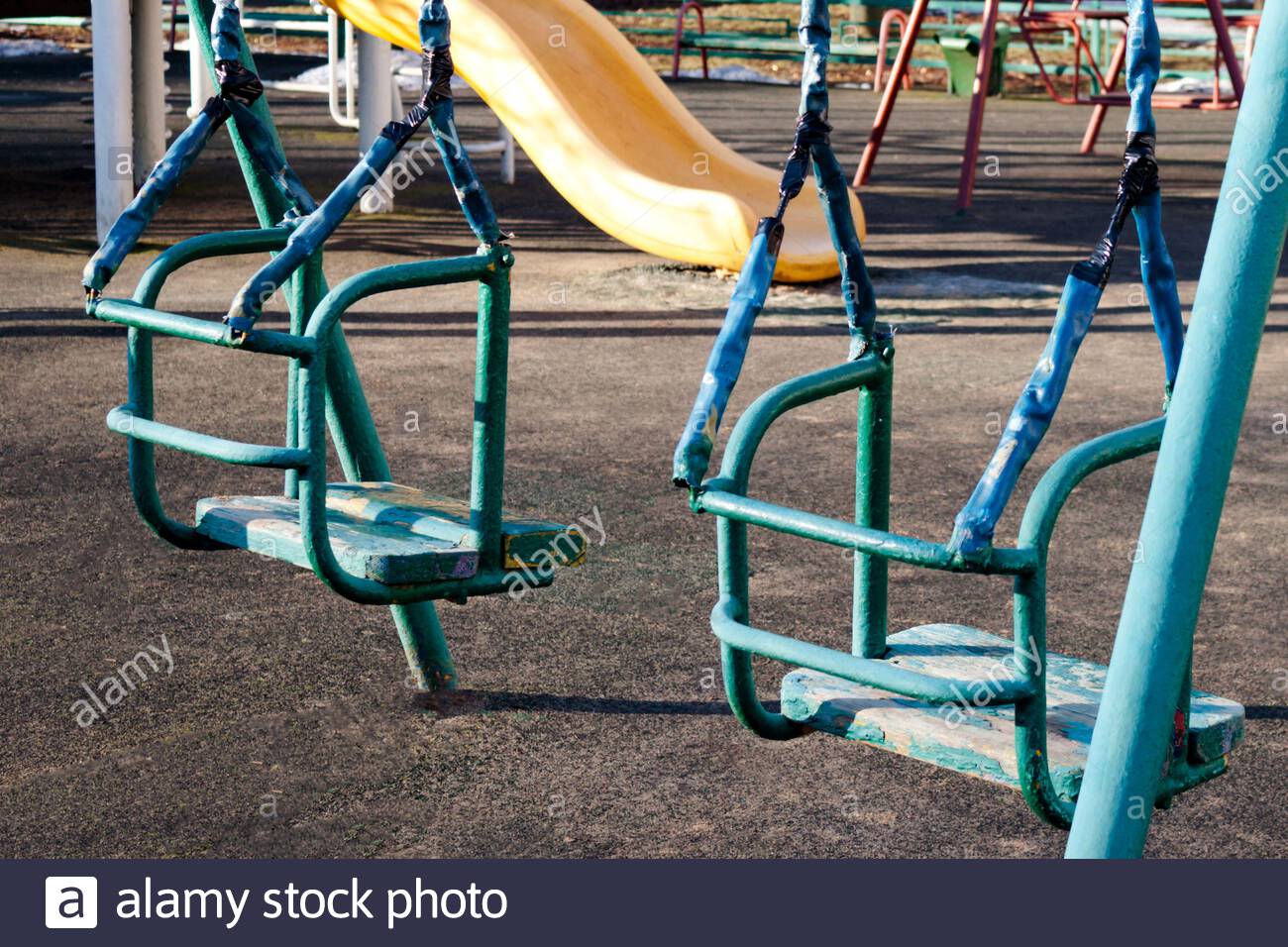 Viejos Y Gastados Columpios Vacios En El Patio De Juegos Para