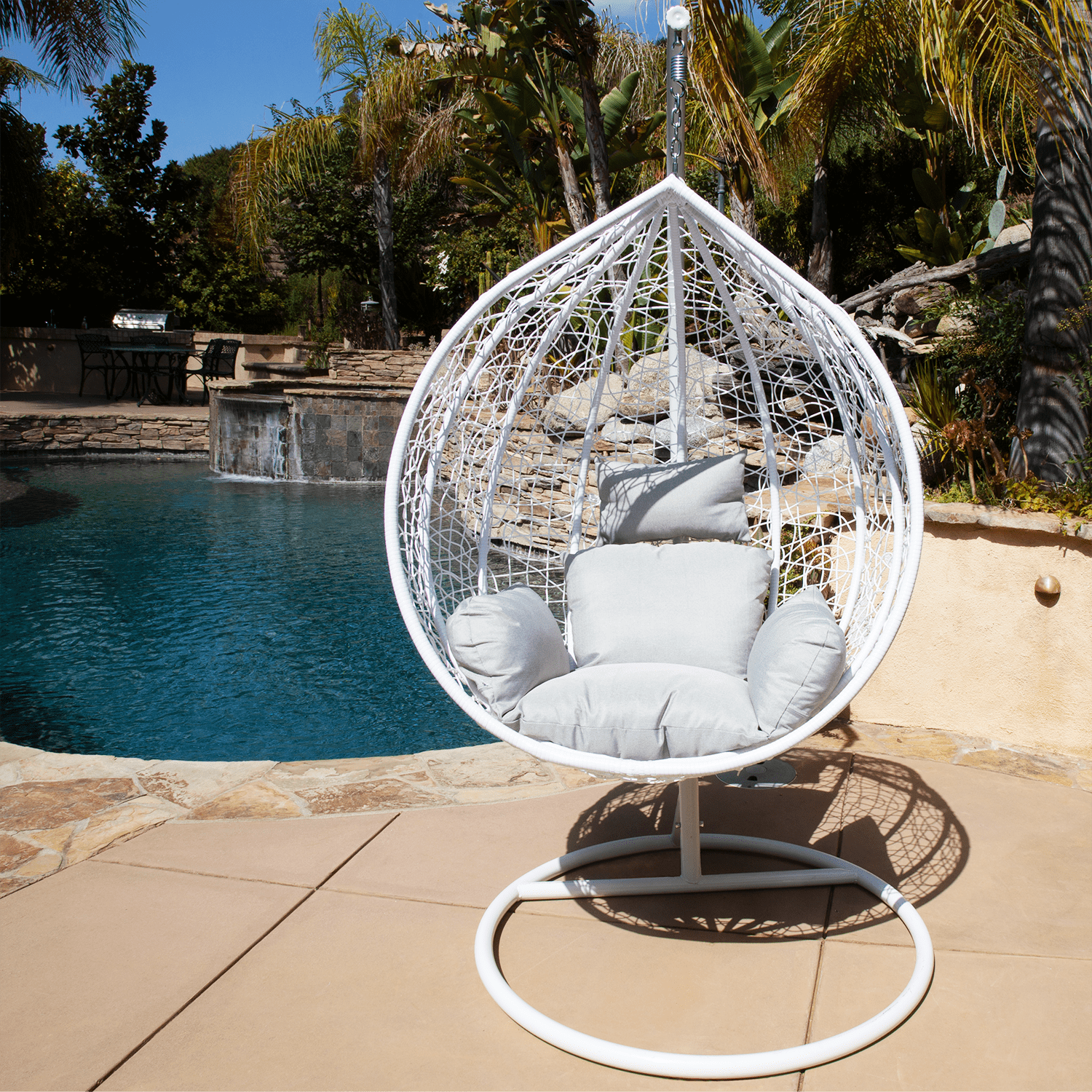 Chairs Abate Outdoor Patio Swing Chair With Stand In Gray White