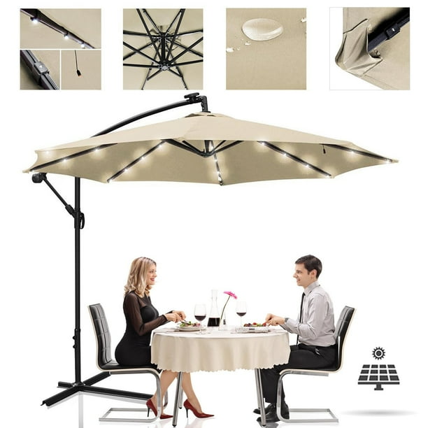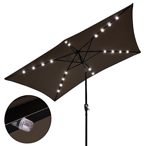 10x6 5ft Rectangle Outdoor Aluminium Beige Patio Umbrella Solar