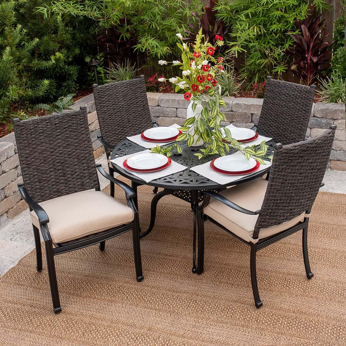 5 Piece Heavy Duty Cast Aluminum Round Patio Dining Table Set With