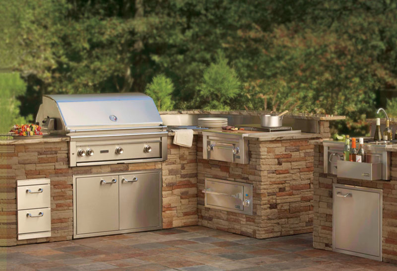 Covered Bbq Area With Natural Stone Counters Traditional Patio