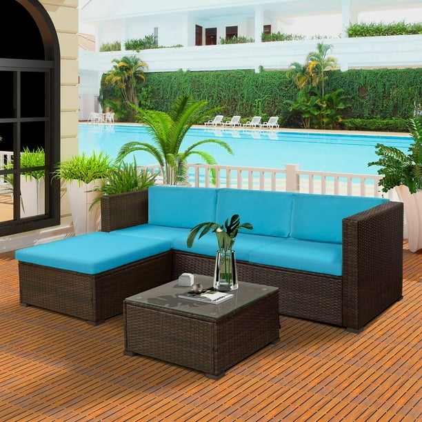 Kinbor 5pcs Outdoor Patio Furniture Sectional Pe Wicker Rattan