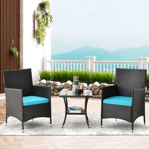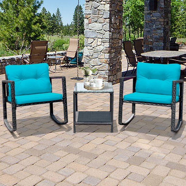 Gymax 3pcs Rattan Rocking Chair Table Set Patio Furniture Set W