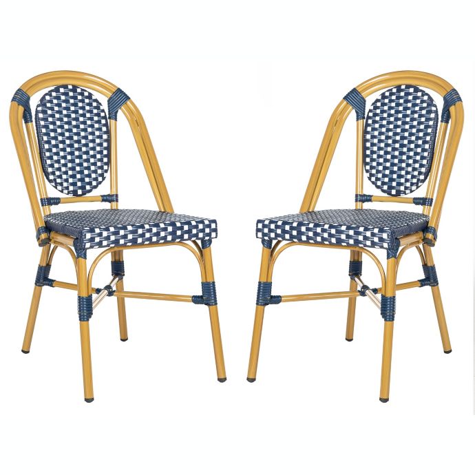 Safavieh Lenda Stackable Patio Bistro Chairs In Navy White Bed