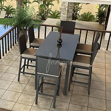 Elite 7 Piece Wicker Outdoor Bar Height Dining Set Hd90053bt