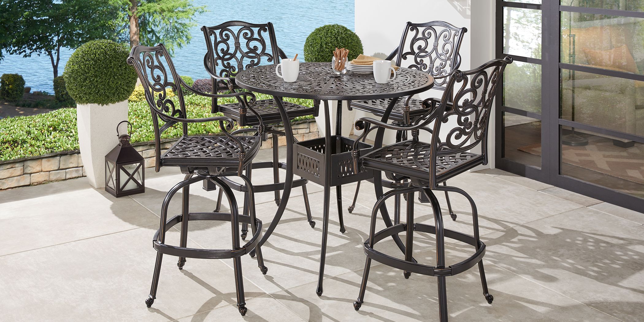 Luxury Living Furniture Monte 7 Piece Brown Frame Bar Height Patio