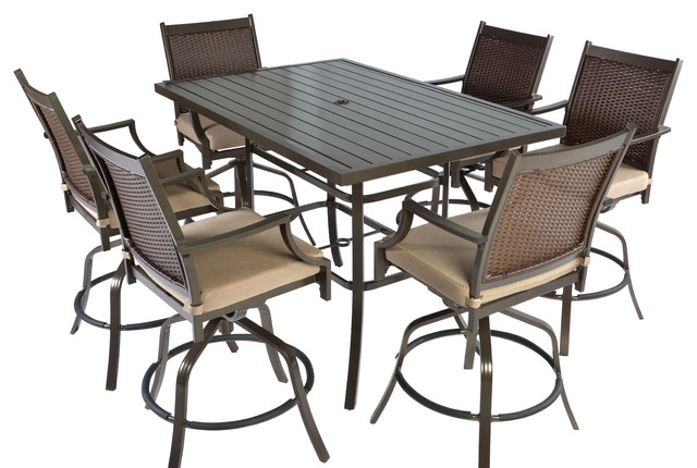 7pc Aluminum And Wicker Swivel Slat Top Patio Bar Height Dining