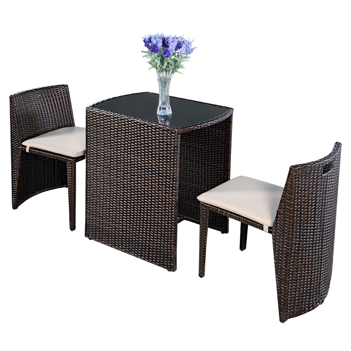 Modern 4 Piece Outdoor Resin Wicker Patio Furniture Set With Beige